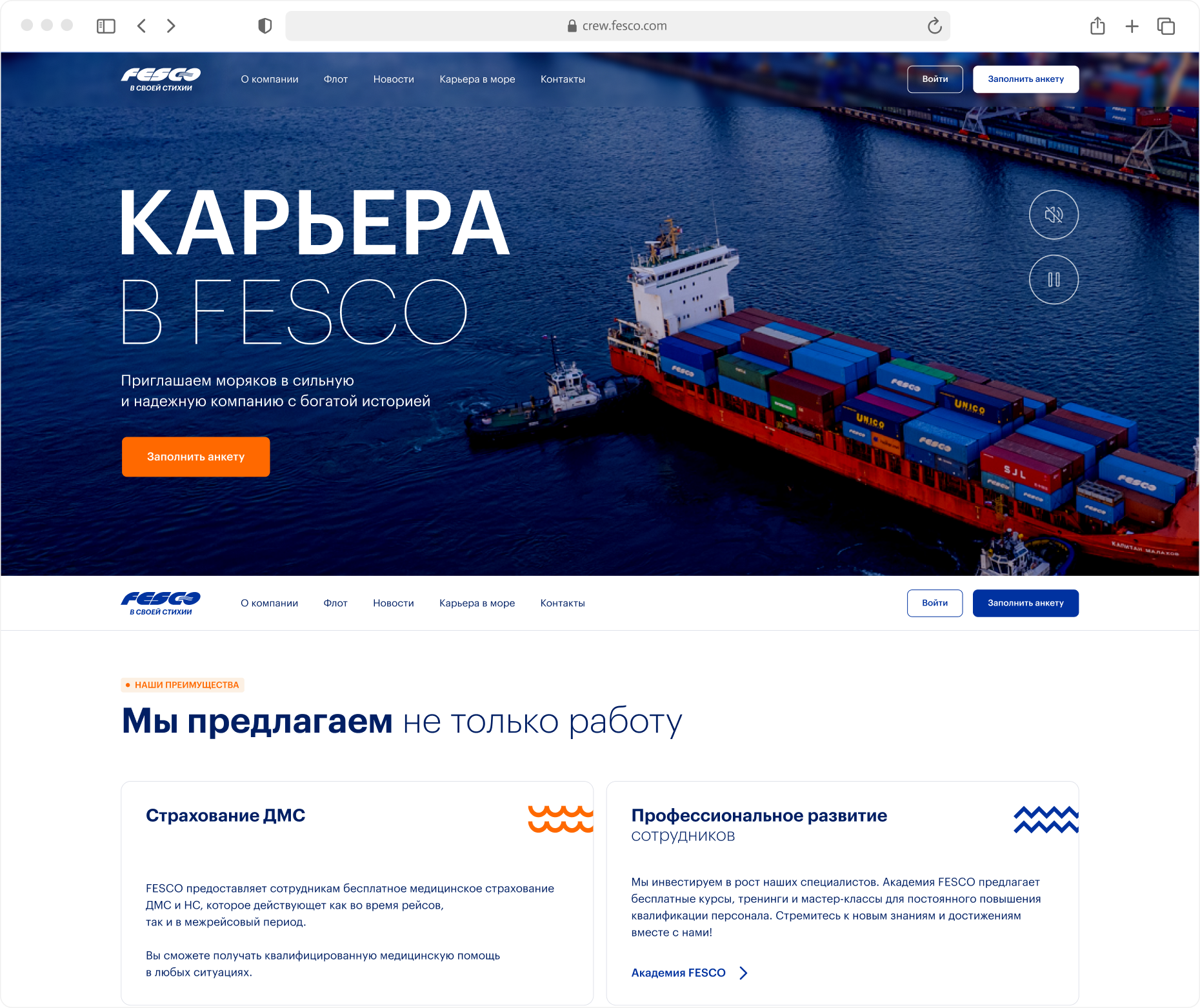Цифровой путь от отклика до первого рейса. Как мы создали сайт, портал и мобильное приложение для моряков FESCO