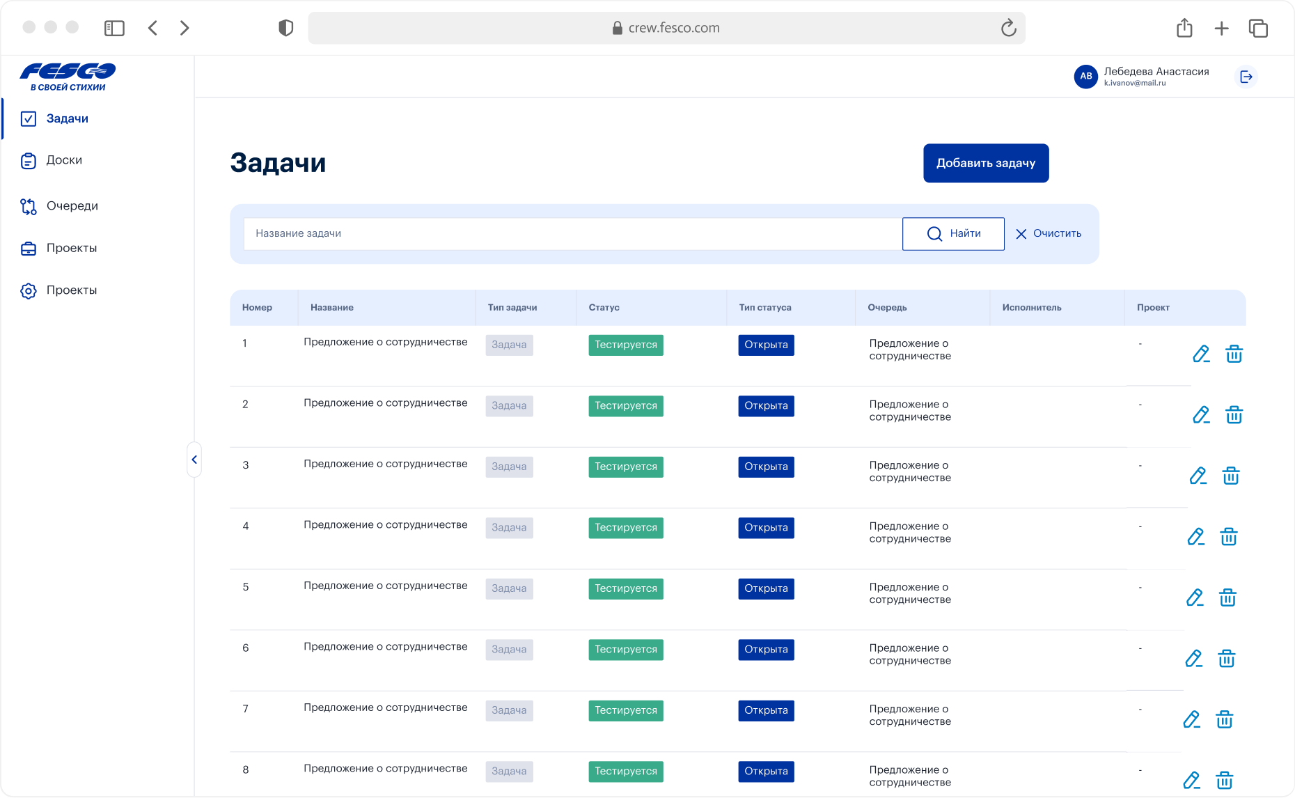 Специалист по перемещению сам выбирает, над каким рейсом будет работать. Менеджер отражается в таблице и на детальной странице задачи, чтобы два специалиста не начали работать над одним и тем же заданием.